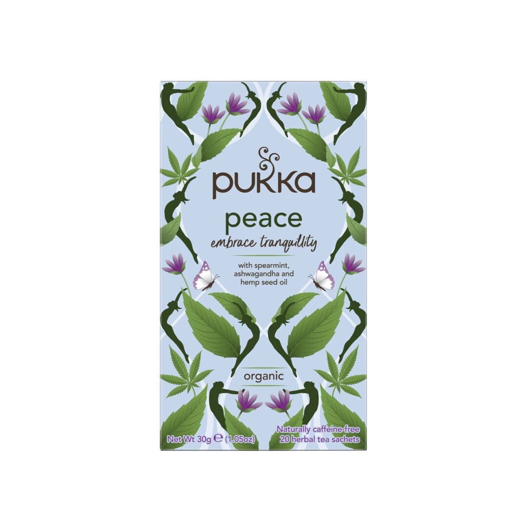 Pukka Organic Peace Herbal Tea is a calming, certified organic blend available in 4×20 sachets. Perfect for servings promoting relaxation.