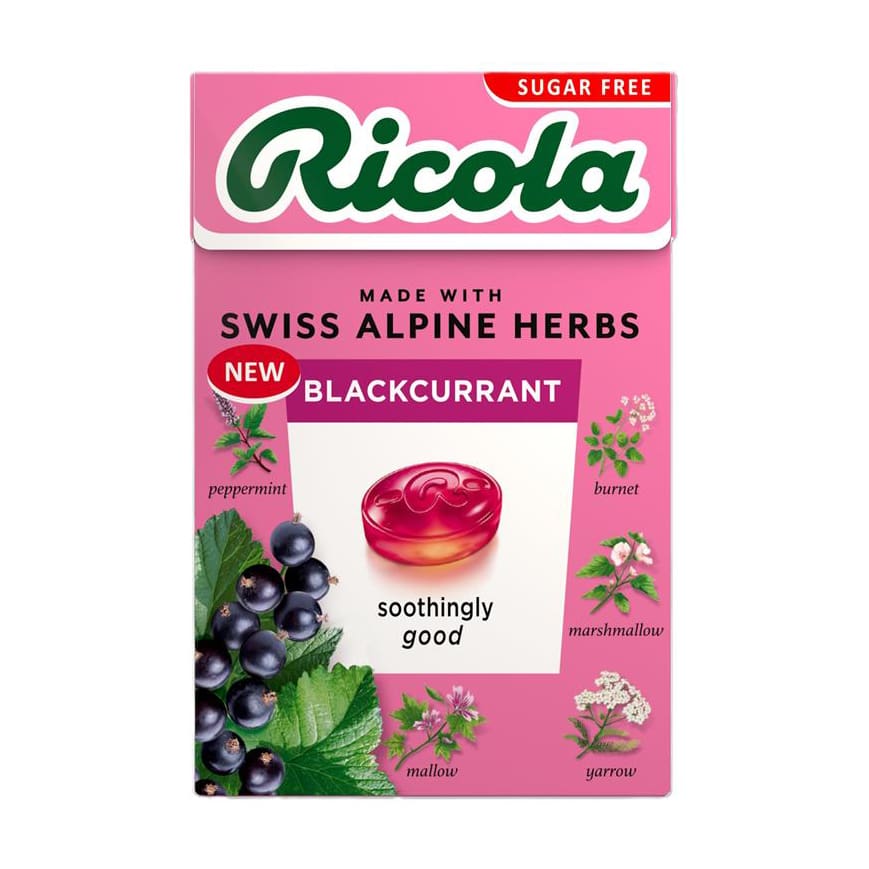 Sweetener (Isomalt) Acid (Citric Acid) Natural Flavourings Extract (0.5%) of Ricola's Herb Mixture Concentrated Blackcurrant Juice (0.3%) Concentrated Elder Juice Sweeteners (Steviol Glycosides from Stevia, Thaumatin) Peppermint Oil Menthol