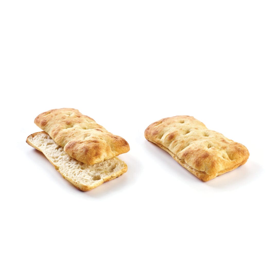 Romana Flat Bread White Pre Sliced offers genuine Italian taste featuring extra virgin olive oil. Ideal for sandwiches or versatile flatbread uses in professional kitchens. Packaged as 32 x 100g.