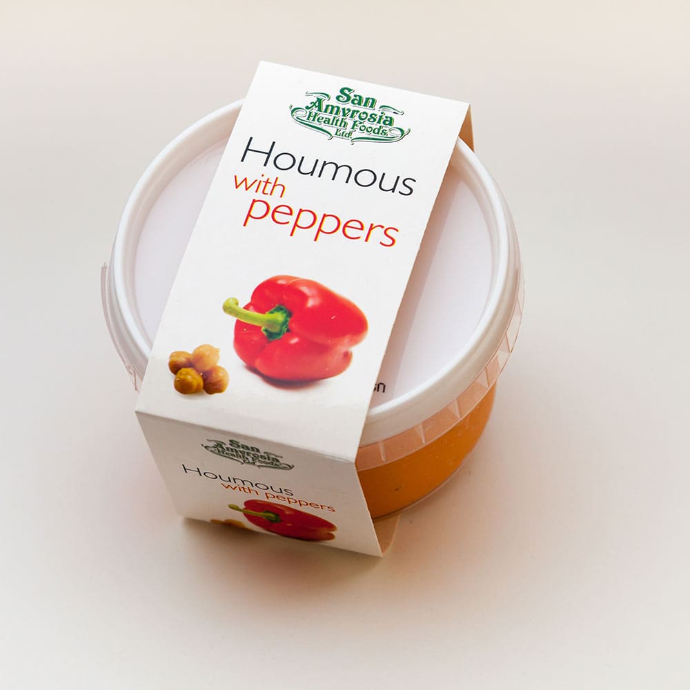 Chickpeas, Sunflower Oil, Sweet Peppers, TAHINI, Water, Fresh Lemon Juice, Sea Salt, Fresh Garlic, Natural Colour.