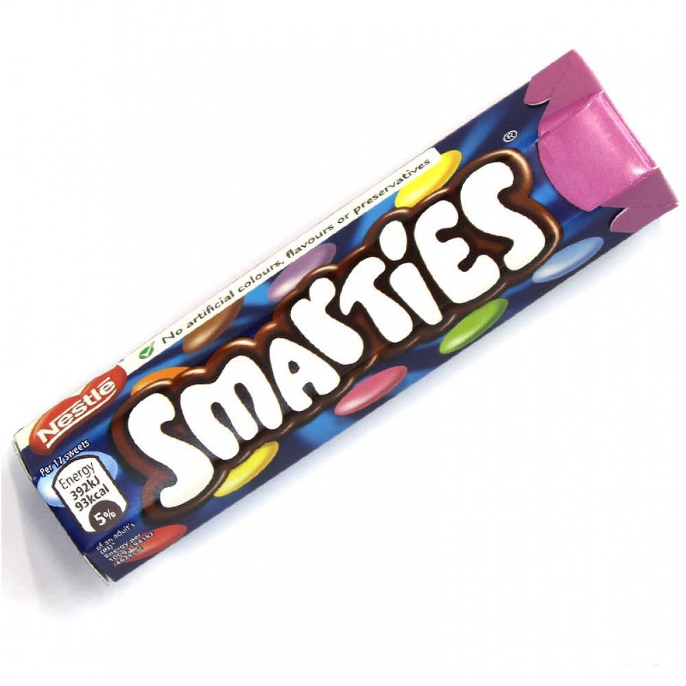Smarties Hexatube 24x38g features smooth milk chocolate covered in colourful crisp shells, presented in resealable tubes ideal for sharing or dessert menus.