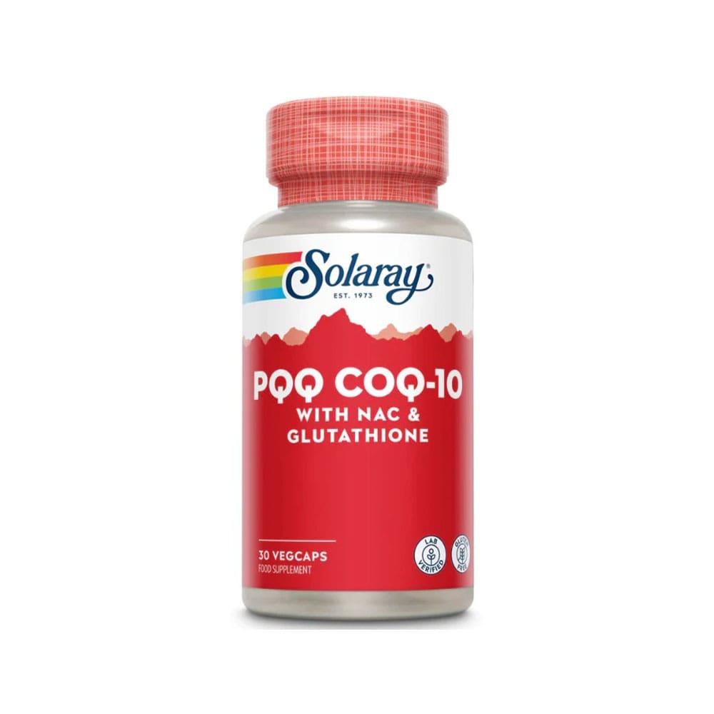 Solaray PQQ capsules support energy and brain health with a powerful antioxidant complex. Each pack contains 30 capsules, perfect for daily use.