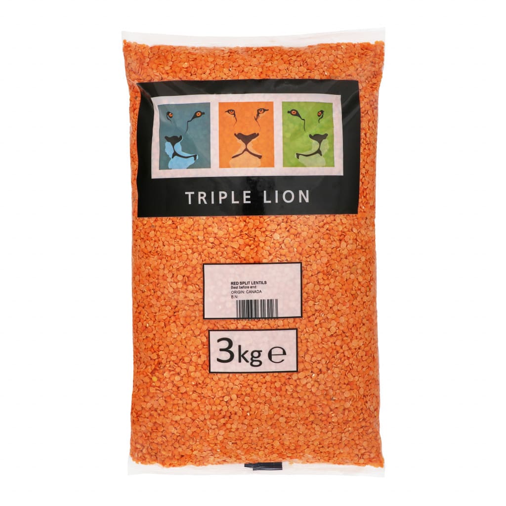 Triple Lion Split Red Lentils 3kg offer quick-cooking, nutritious pulses perfect for soups, stews and curries. Reliable quality for versatile kitchen use.