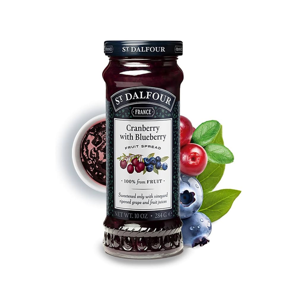 St Dalfour Cranberry & Blueberry Preserve captures the authentic taste of gently cooked berries, ideal for toasts and desserts. Supplied in 1x284g jars.