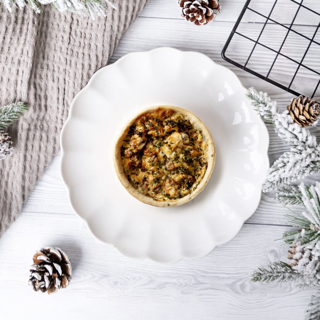 Coopers Stilton & Broccoli Quiche offers a rich, creamy filling with distinct cheese and fresh broccoli in a crisp pastry case. Supplied in 24x145g packs, ideal for menu variety.
