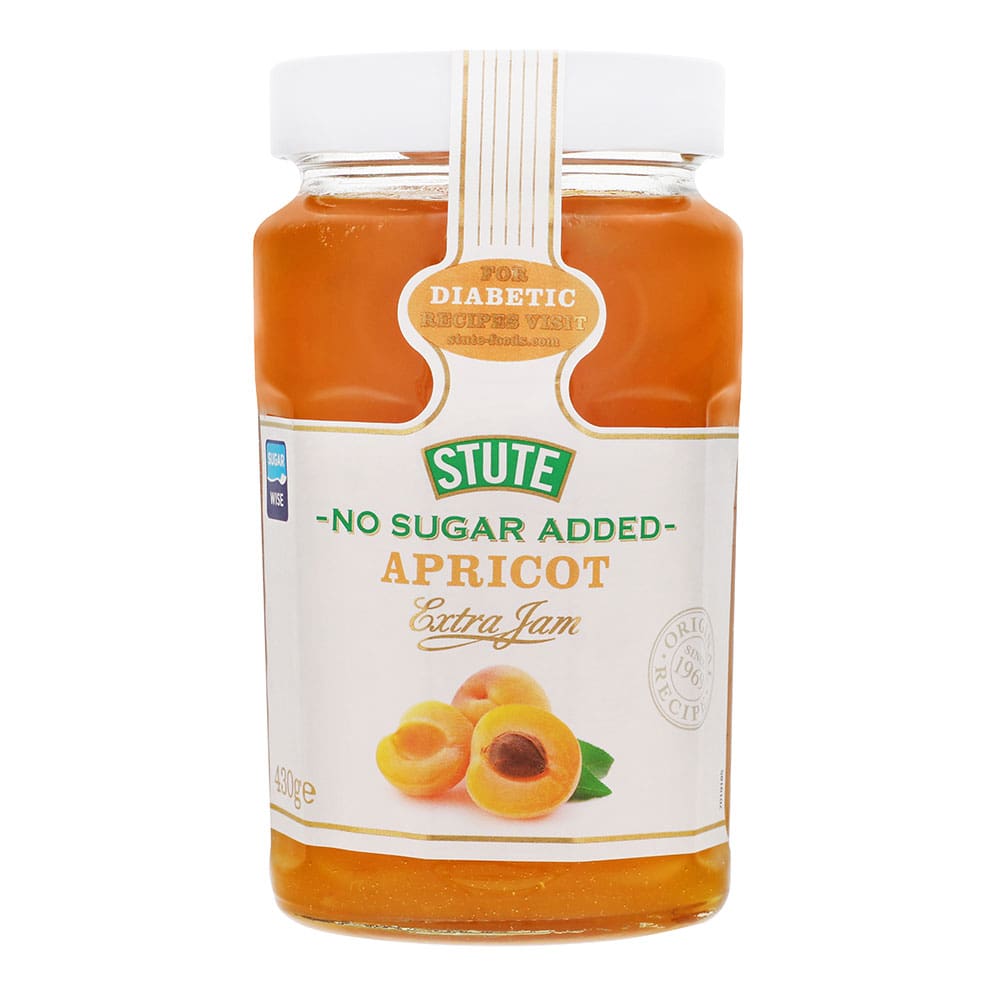 Stute Diabetic Apricot Jam contains no added sugar, delivering 90% less sugar and 30% fewer calories. Supplied in a convenient 430g jar, it suits health-conscious menus and diabetic dietary needs.