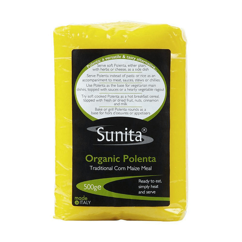Sunita Organic Ready To Eat Polenta is a gluten-free maize product, ideal as a versatile alternative to pasta and bread for quick meals. Presented in a 500g pack.