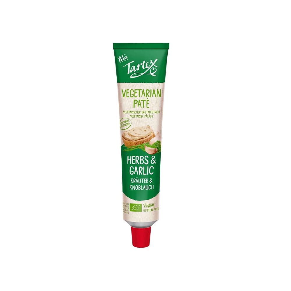Tartex Organic Herb & Garlic Pate is a creamy, organic vegetarian spread ideal for sandwiches, starters, or canapés. Supplied in 12x200g packs for versatile use.