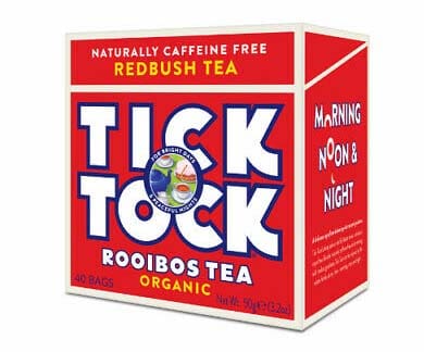 Tick Tock Organic Rooibos Tea offers a rich, caffeine-free flavour in convenient 4x40 biodegradable bags. Ideal served hot or iced with milk or lemon.