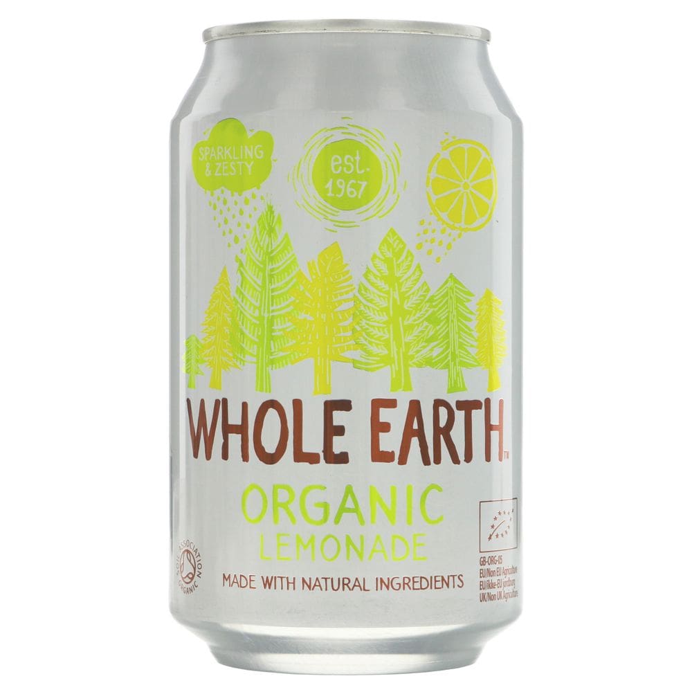 Lightly sparkling Whole Earth Organic Lemonade in 330ml cans. A natural, organic take on a classic favourite, perfect chilled and refreshing.