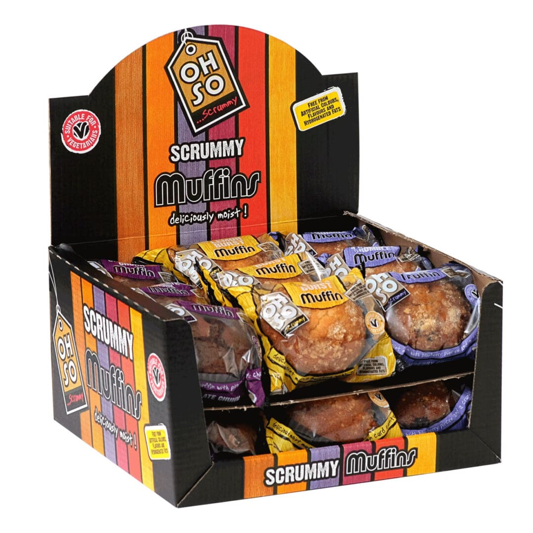 Chocolate Chunk Muffin: Sugar, Fortified Wheat Flour (WHEAT Flour, Iron, Thiamin, Nicotinic Acid, Calcium Carbonate), Water, Rapeseed Oil, Plain Chocolate Chunks (8%) (Cocoa Mass, Sugar, Emulsifier (SOYA Lecithin), Flavouring), Chocolate Sauce (7%) (MILK, Plain Chocolate (Cocoa Mass, Sugar, Cocoa Butter, Emulsifier ( SOYA Lecithin), Flavouring), Chocolate Compound (Sugar, Palm Kernel Stearin, Fat Reduced Cocoa Powder, Emulsifier (SOYA Lecithin), Flavouring), Sugar, Glucose Syrup, Humectant (Glycerol), Modified Waxy Maize Starch, Water, Preservative (Potassium Sorbate)), Humectant (Glycerol),