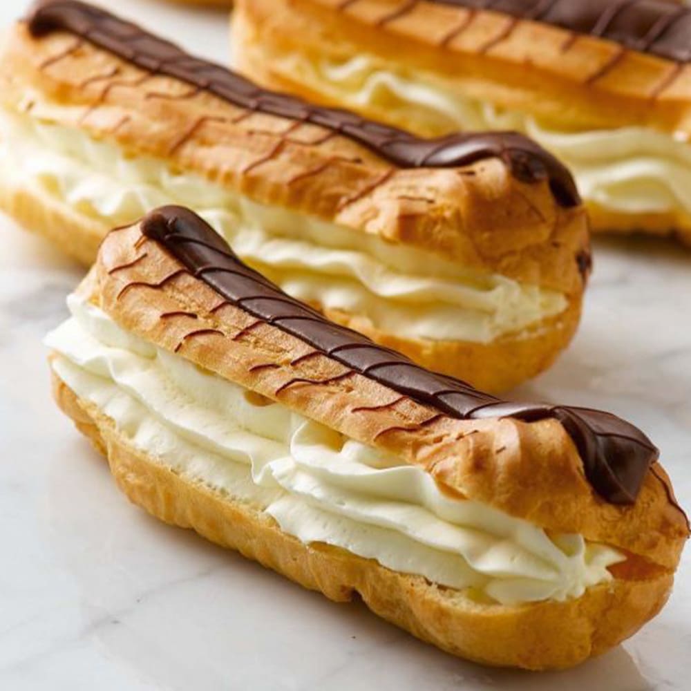 Whipped Cream (51%) [Whipping Cream (MILK), Sugar, Stabilisers (E450, E401)], Choux Pastry [Whole Pasteurised EGG, Rapeseed Oil, WHEAT Flour (contains Calcium carbonate, Iron, Niacin, Thiamin), Corn Flour, Emulsifier (E472c), Raising Agent (E450iii), Salt], Chocolate Fondant (17%) [Sugar, Chocolate (Cocoa Mass, Sugar, Cocoa Butter, Emulsifier (SOYA Lecithin)), Glucose Syrup, Water, Emulsifier (E471), Preservative (E202)], Dark Lacing [Sugar, Palm Oil, Fat Reduced Cocoa Powder, Fortified Wheat Flour (WHEAT Flour, Calcium Carbonate, Iron, Niacin, Thiamine), Whey Powder (MILK), Emulsifiers: SOYA Lecithin, E476; Natural Flavouring].