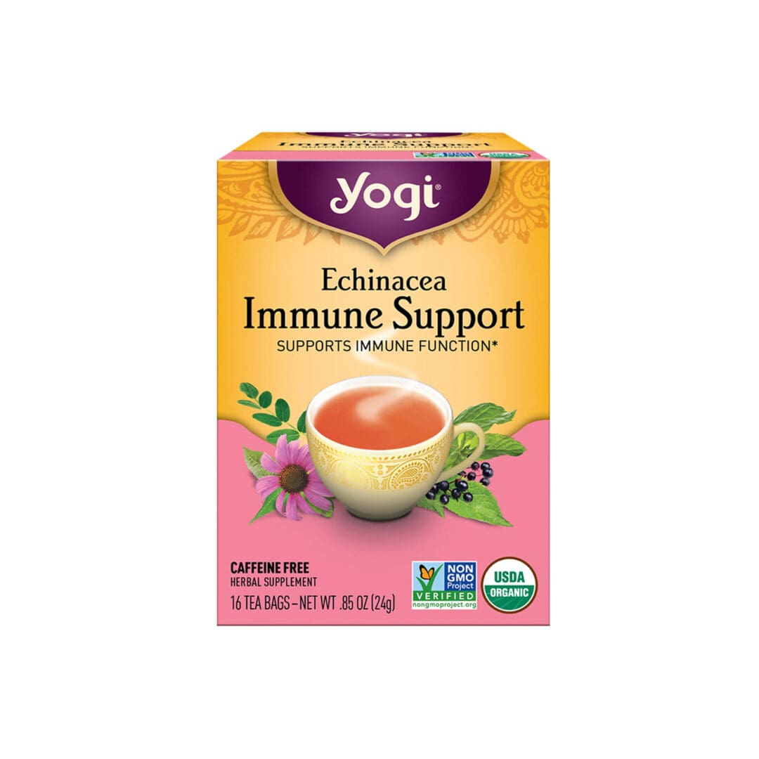 Yogi Organic Echinacea Immune Tea offers a vibrant herbal blend renowned for supporting wellbeing. Presented in 6 packs of 17 bags, perfect for catering and retail needs.
