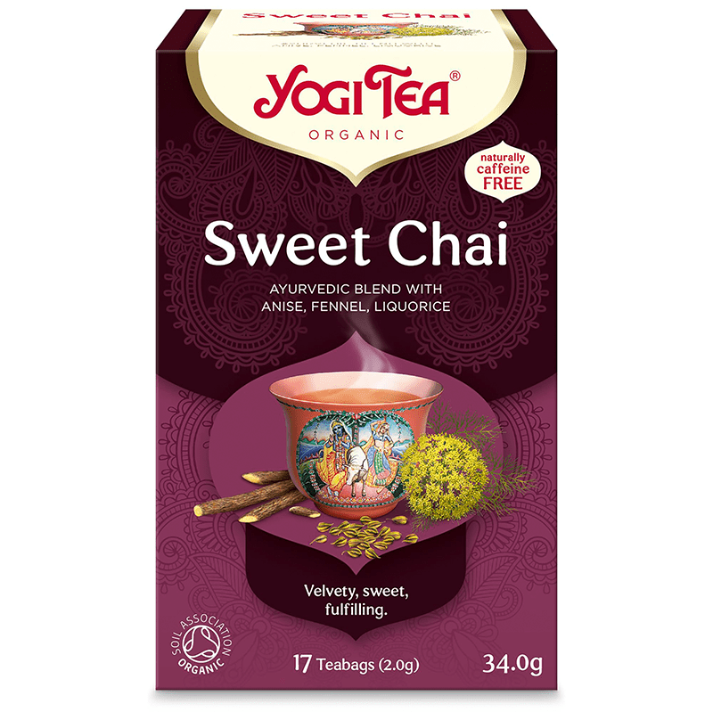 Yogi Organic Sweet Chai Tea Bags combine a naturally sweet flavour with biodegradable, organic materials. Presented in 6x17 bags for trusted quality.